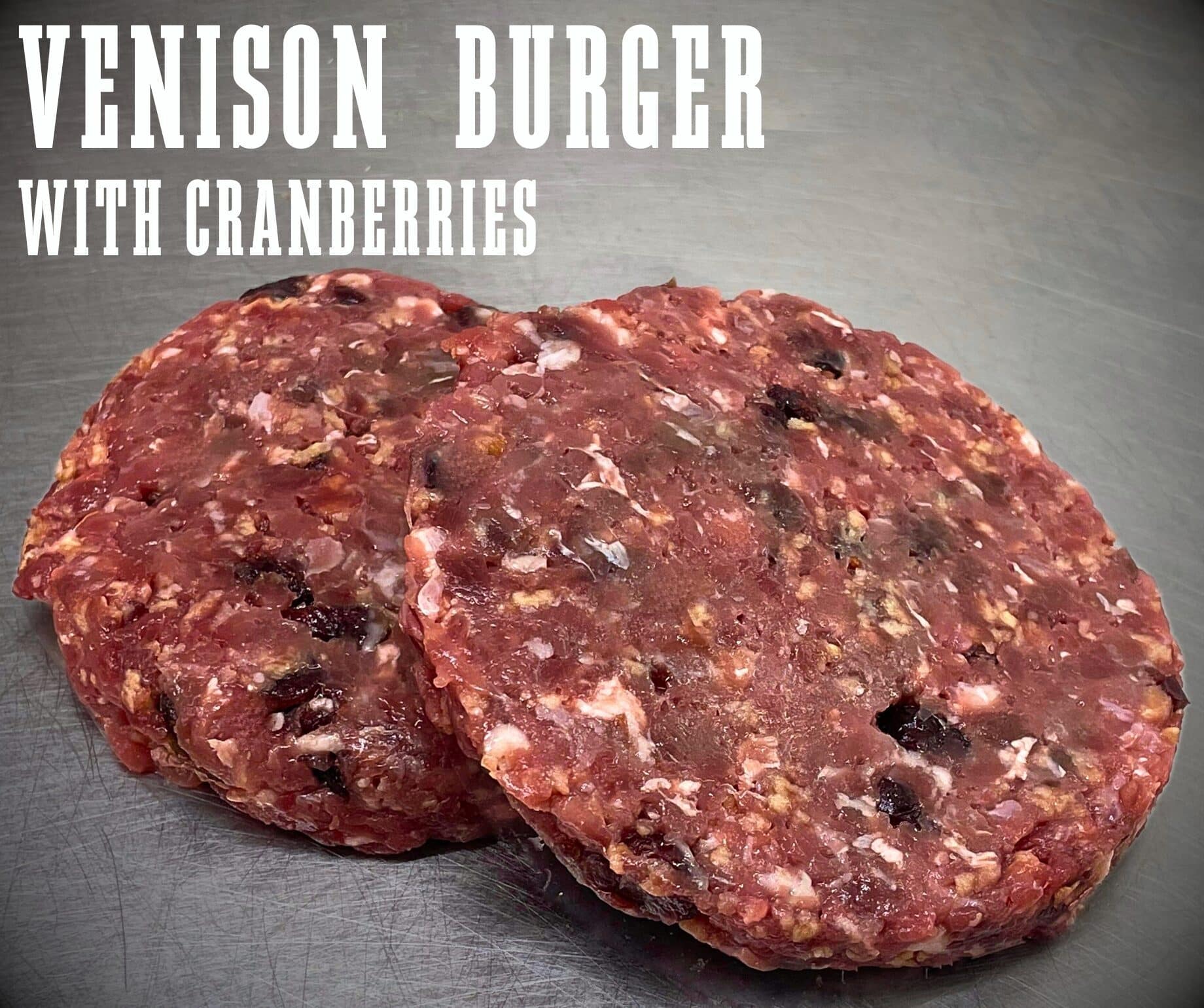 Our Venison Burgers are made using only the finest Wild Venison, expertly butchered by our skilled team to ensure top quality in every bite. Each burger is handcrafted with our own special blend of seasonings, aromatic herbs, and sweet-tart cranberries, perfectly complementing the rich, deep flavours of this exceptional meat.